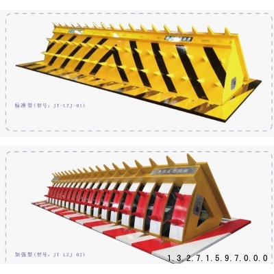 河南郑州液压翻板路障机Hydraulic flap roadblocks液压翻板路障机分为加强型、标准型两种,其主要是为敏感区域防止非允许车辆强行闯入而专门设计研发的,具有很高的实用性、可靠性及安全性。液压翻板路障机主体是由:主体(Q235钢材焊接成形)、液压油缸、液压站系统和PLC控制体系组成。由Q235钢材焊接成形、液压油缸、液压站系统和PLC控制系统组成。
