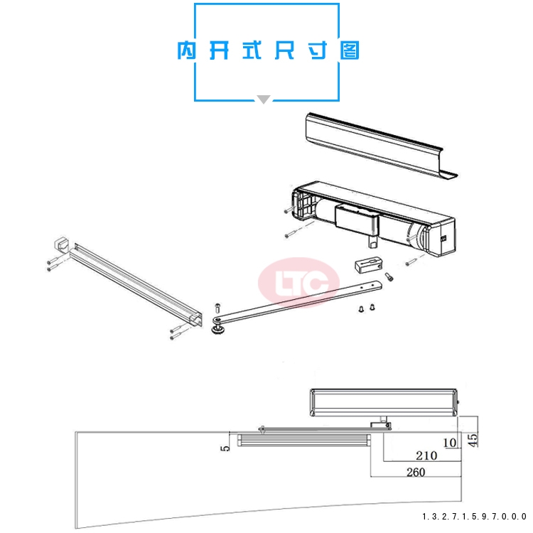 表面安装式: ........常见的类型,安装在门扇上方(或侧面)和门框上,类似于传统闭门器。