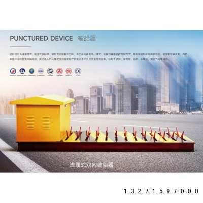 郑州安装破胎器路障,型号双向破胎式破胎器Q235高碳钢/304不锈钢材质厚度10mm拦截宽度1-10米(可定制)刀片长度110mm刀片间距125mm运动形式机电液压升降时间0.7-1.5秒。